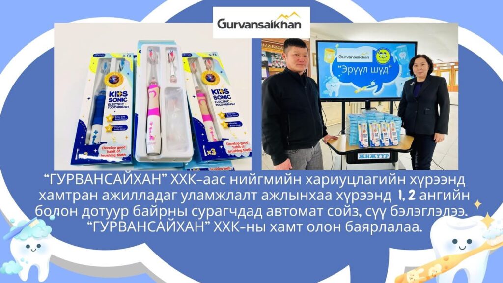 Within the framework of its corporate social responsibility activities, Gurvansaikhan LLC donated a total of 100 electric toothbrushes and milk to 1st and 2nd grade and dormitory children.Gurvansaikhan LLC wishes everyone good health and happiness. Leave a Comment / Uncategorized / Oyungerel Within the framework of its corporate social responsibility activities, Gurvansaikhan LLC donated a total of 100 electric toothbrushes and milk to 1st and 2nd grade and dormitory children.Gurvansaikhan LLC wishes everyone good health and happiness. Read More »